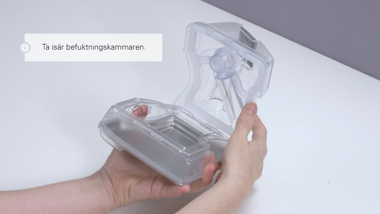 • Förbered behållaren till befuktaren (gäller endast om en sådan har ordinerats).