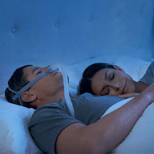 Om du känner dig instängd eller tycker att PAP-masken märks för mycket är minimalistiska AirFit P10 masken för dig. Den har ett bredare synfält än en vanlig näsmask, samtidigt som näskuddemjukdelen ger stabilitet och god täthet1.