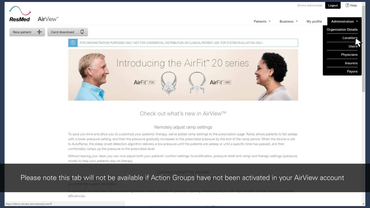 Du kan be din Resmed-representant om en demonstration digitalt eller skicka en förfrågan här. Vi tillhandahåller också instruktionsvideor för funktionerna i AirView.