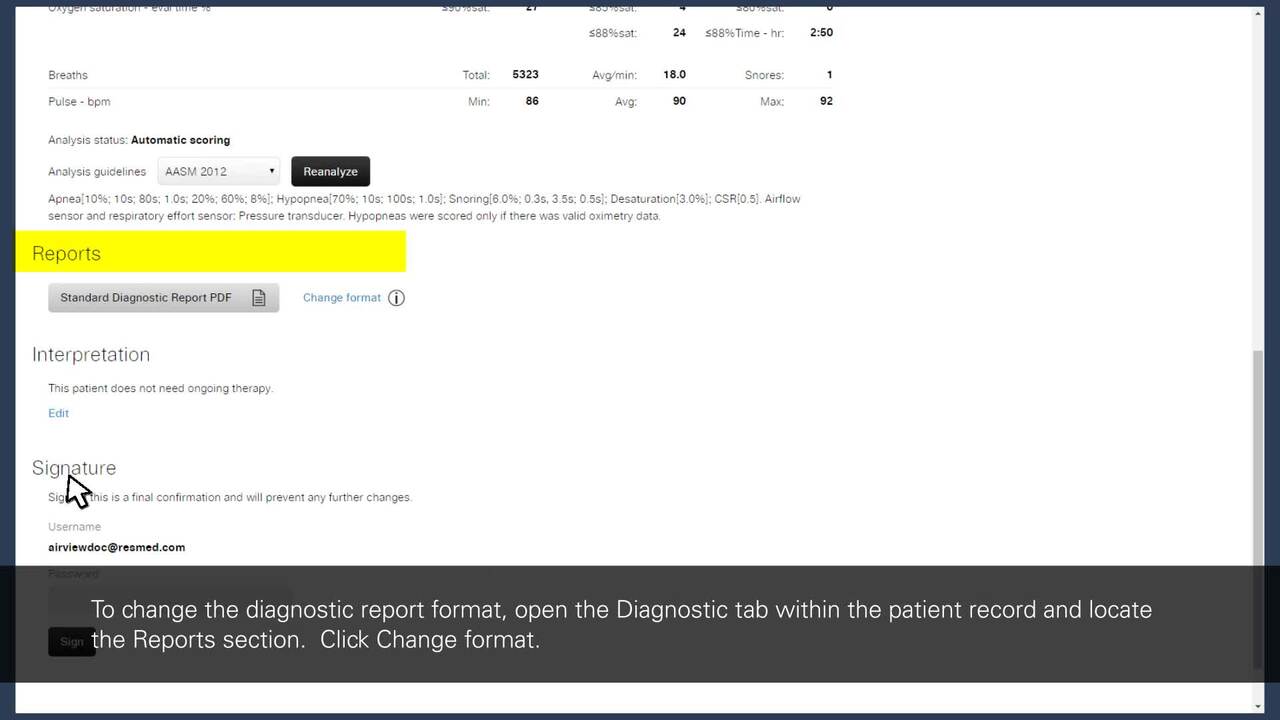 Tolka och signera en diagnostikrapport elektroniskt