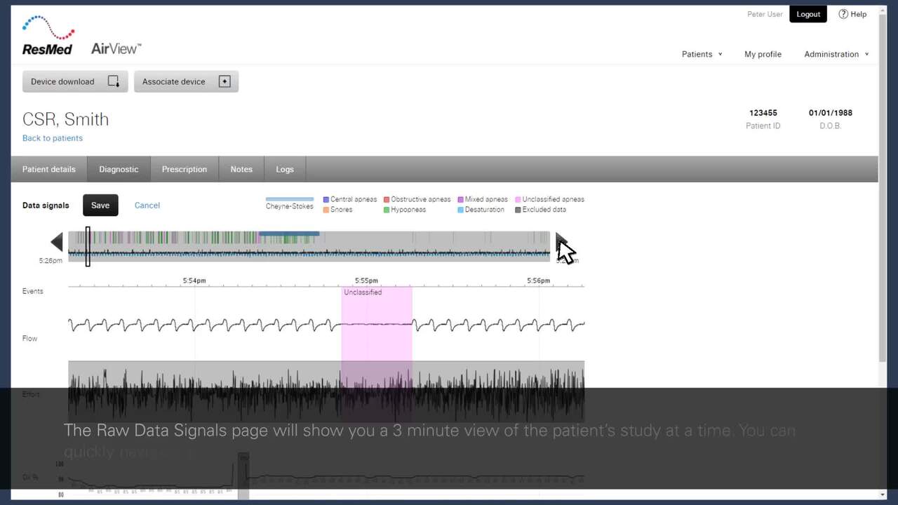 Analysera behandlingen via en detaljerad signalöversikt med möjlighet till manuell bedömning.