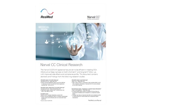 - Komplett respons (AHI <10): Narval CC som tillverkats med CAD/CAM: 66 % (CI 95 %: 61–72 %) jämfört med antiapnéskena som inte tillverkats med CAD/CAM: 49 % (CI 95 %: 36–62 %) ; p=0,017
